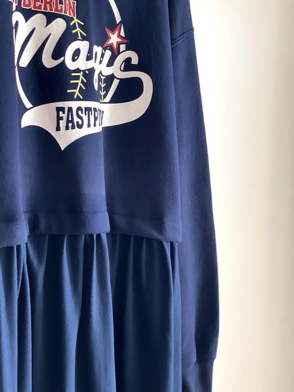 スカート部分にはネイビーの柔らかいTシャツ布地を使用し、