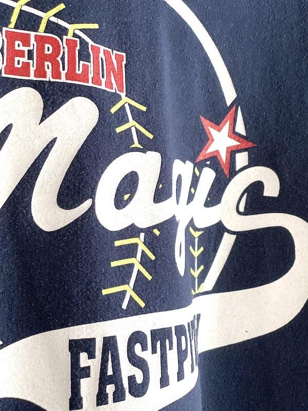 古着ボディのネイビースウェットにあわせ、
