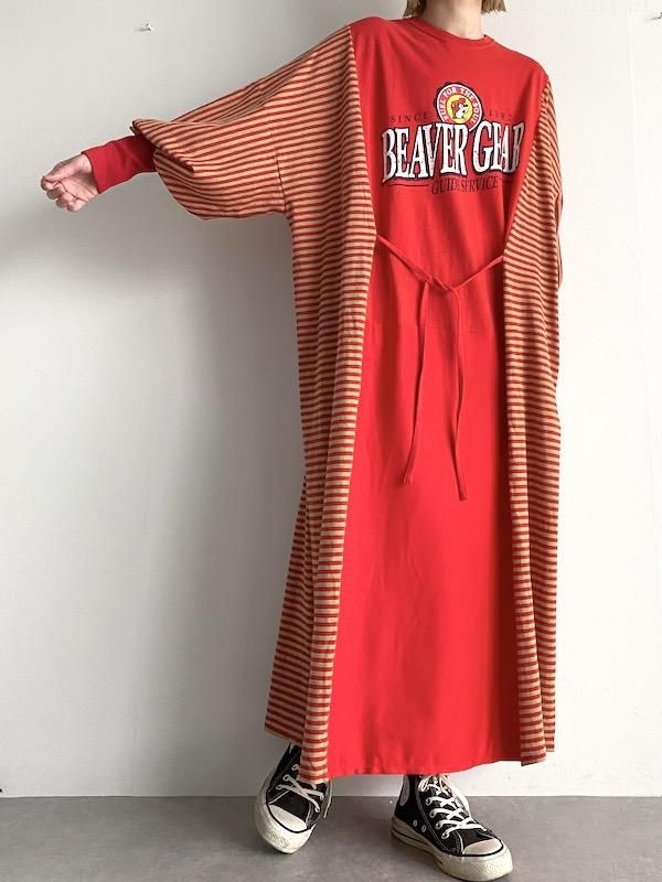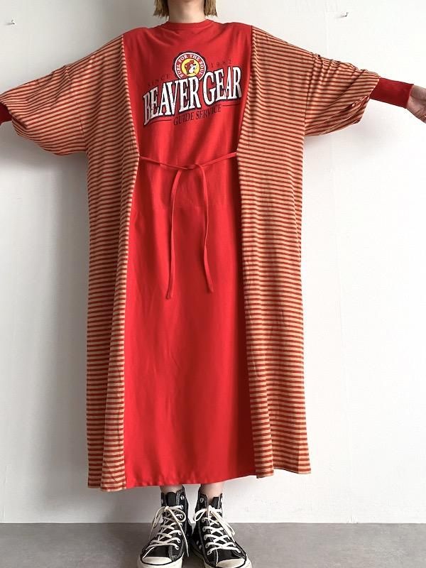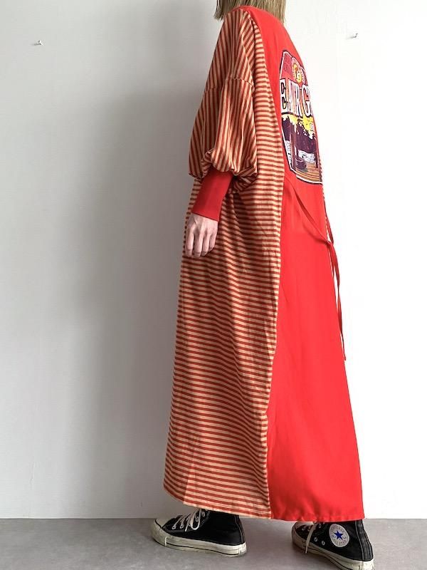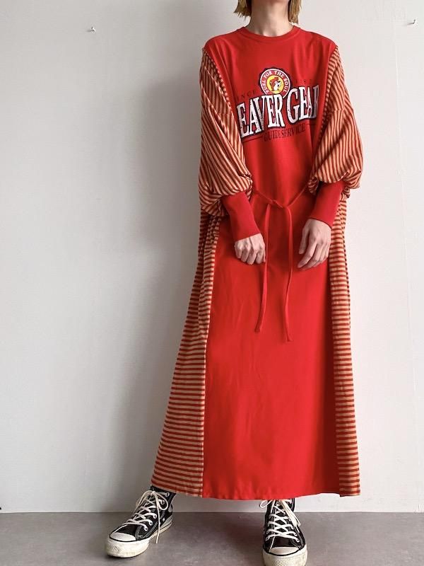 Remake wide dress / リメイクワイドワンピース (RED/border)
