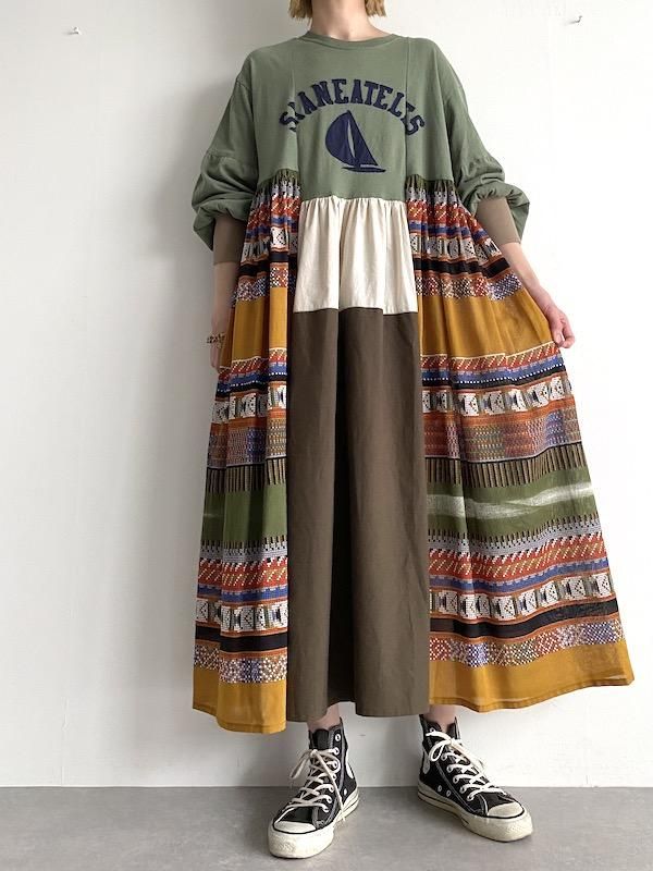 Remake asymmetry long dress / リメイクアシンメトリーワンピース(khaki)